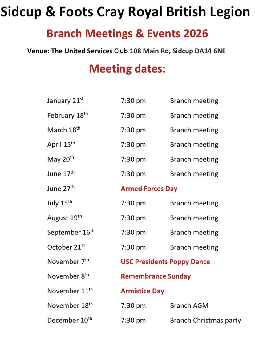 VENUE: USC Sidcup (Branch HQ) 108 Main Road Sidcup DA14 6NE